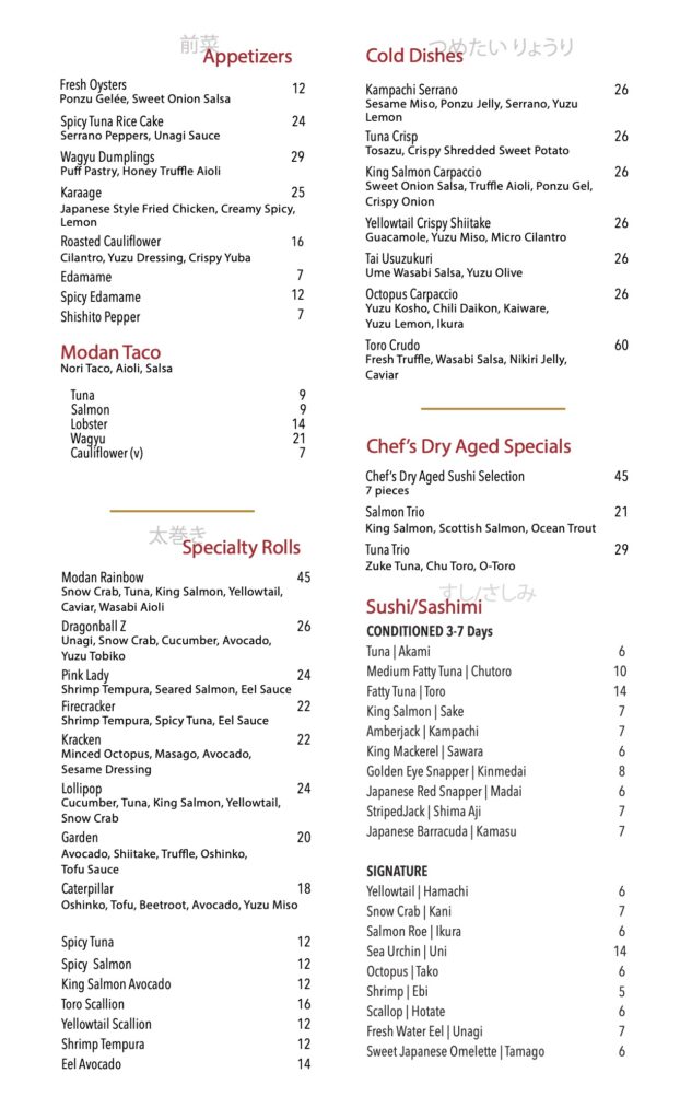 We invite you to experience a modern take on Omakase at our 8-seat counter. Our offerings are driven by seasonal products, highlighting Japanese dry-aged fish, wagyu beef, and curated local produce.